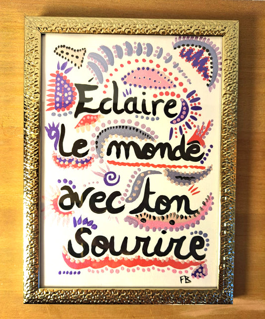 Citations inspirantes '' Eclaire le monde avec ton sourire '' cadre à poser.